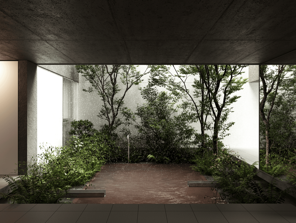 Acceso a edificio de viviendas en donde se muestra el tanque de reserva del edificio expuesto en forma de estanque, el mismo evidencia las fluctaciones de los arroyos entubados de buenos aires durante los distintos momentos de la lluvia en la misma.